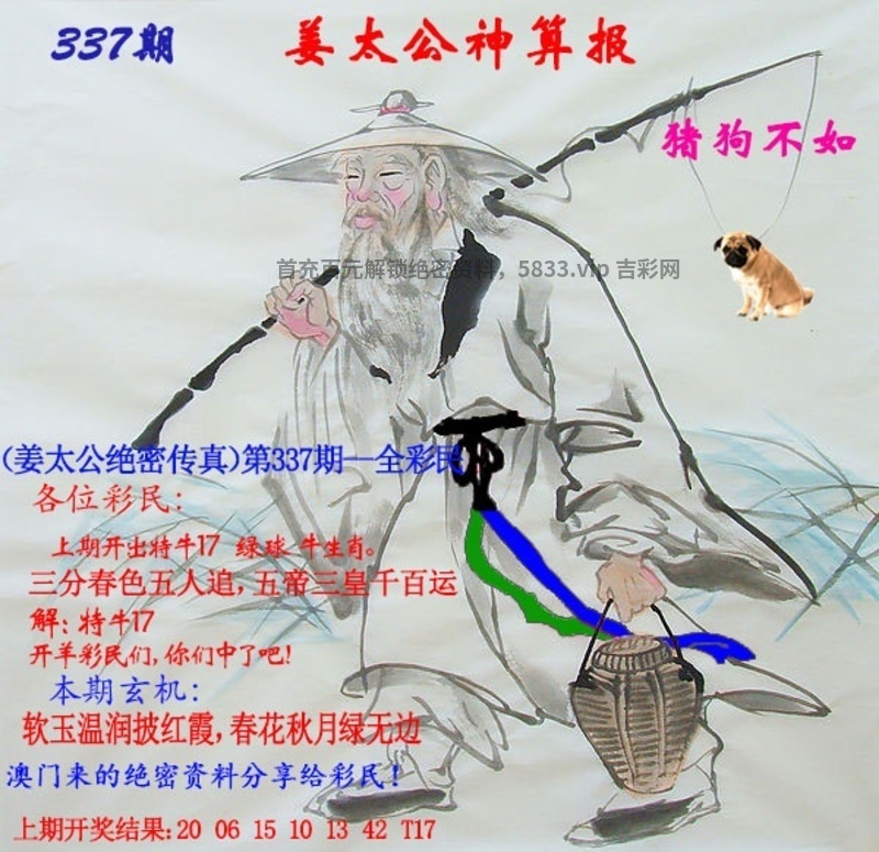 | 336期:玄机测字【把】开:牛17 玄机七肖:猪羊马鸡龙牛猴 卜卦单双:单数 |